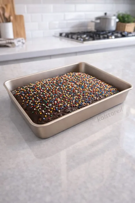 תבנית מלבנית איכותית מסדרת הזהב במידה מושלמת 32×27 ס"מ וגובה 6 ס"מ אידאלית לעוגות, עוגות שמרים, בראוניז, פשטידות ותבניות אירוח.