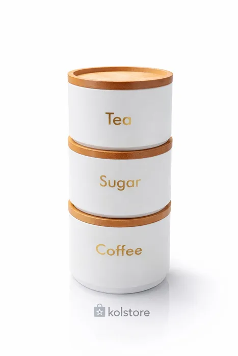 סט תה קפה סוכר "מגדל" צבע לבן בשילוב עץ