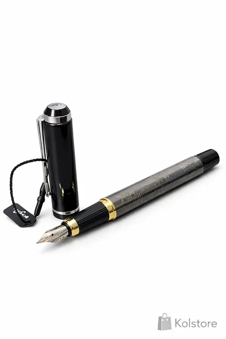 עט נובע יוקרתי מהסדרה העסקית בציפוי מתכת עם הבלטות בסמלי ירושלים.