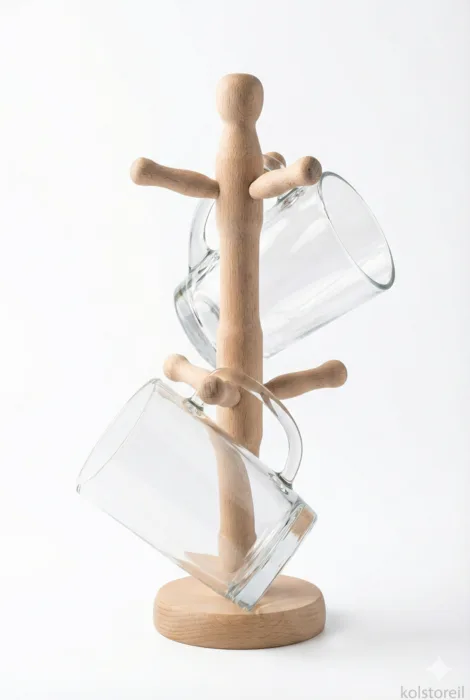 מעמד עץ רטרו לכוסות איכותי מיוצר בפולין.