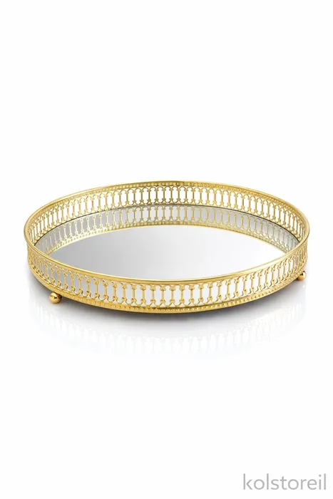 מגש עגול זהב עם בסיס מראה קוטר 25 ס"מ
