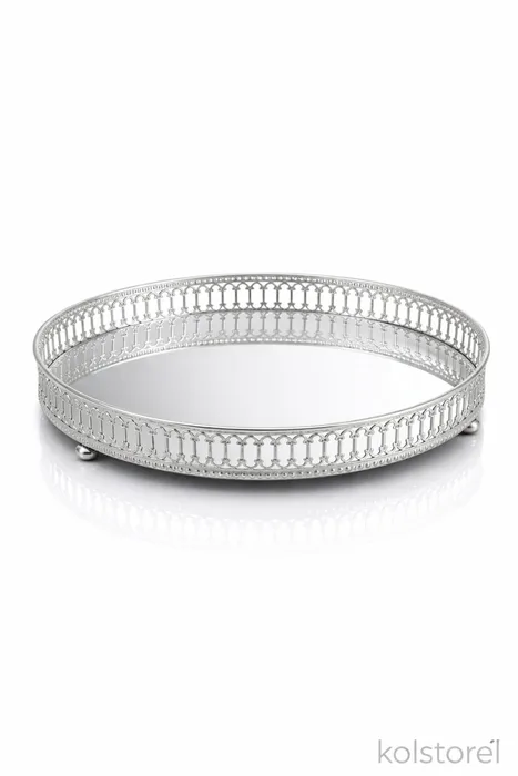 מגש עגול כסף עם בסיס מראה קוטר 25 ס"מ