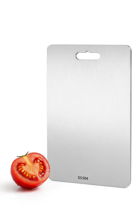 קרש חיתוך עשוי נירוסטה איכותית מסוג SS304, המתאים למגע עם מזון ועומד בסטנדרטים הגבוהים ביותר של היגיינה.