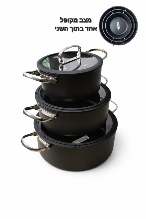 בשל הפטנט הייחודי הסירים נכנסים אחד בתוך השני לחיסכון במקום.