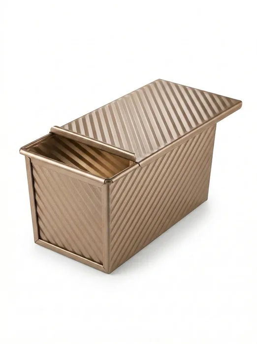 הפכו כל מאפה ביתי לחוויית בוטיק. תבנית הלחם המקצועית שלנו, בעיצוב פולמן (Pullman) עם מכסה נשלף, מעוצבת כדי לתת לכם תוצאות אחידות ומדוייקות, ישירות מהתנור הביתי. עם גימור ברונזה אלגנטי וטקסטורה חכמה, זו התבנית שתגרום לכם להתאהב באפיית לחם מחדש.